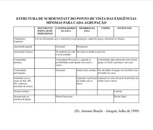 - Ligas: compromisso frequente, com liberdade e espontaneidade apostólica;